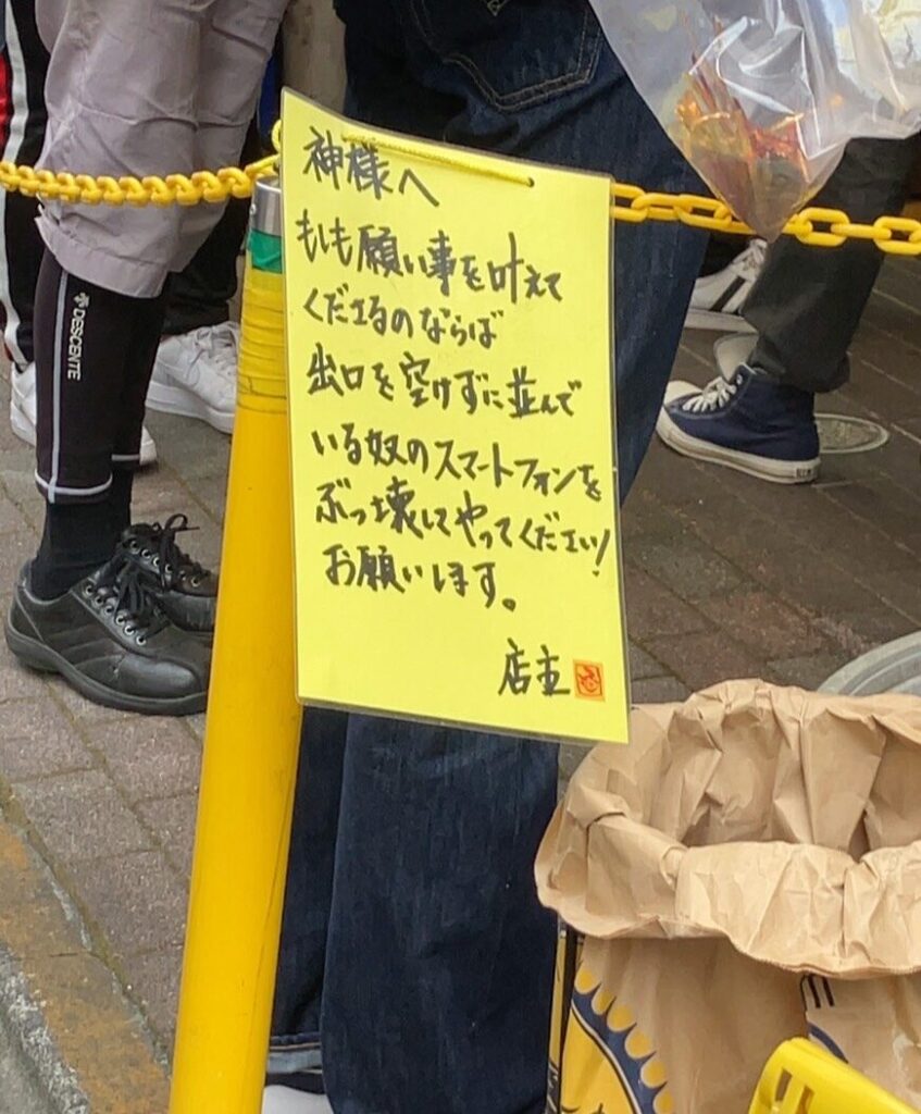 店舗は静かな住宅街の中にあり、外からでもどこか独特の緊張感が漂う。列に並ぶと、入口付近の張り紙が目に入る。